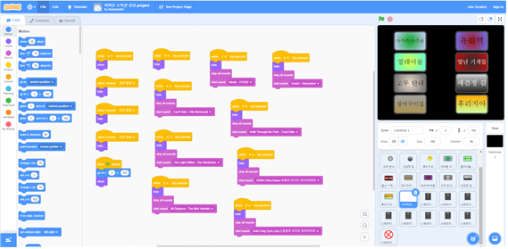 ‘<아마존 수족관> 프로젝트’에는 감상 프로젝트도 함께 구성되어있는데 그건 블록 코딩 프로그래밍 언어 ‘스크래치(Scratch)’를 사용해 제작했습니다.