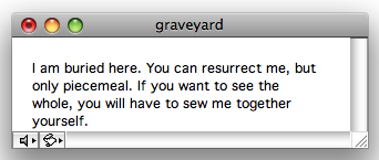 나는 여기 묻혀 있다. 너는 나를 되살릴 수 있지만, 조각조각일 뿐이다. 전체를 보고 싶다면, 네가 직접 나를 꿰매야 한다.