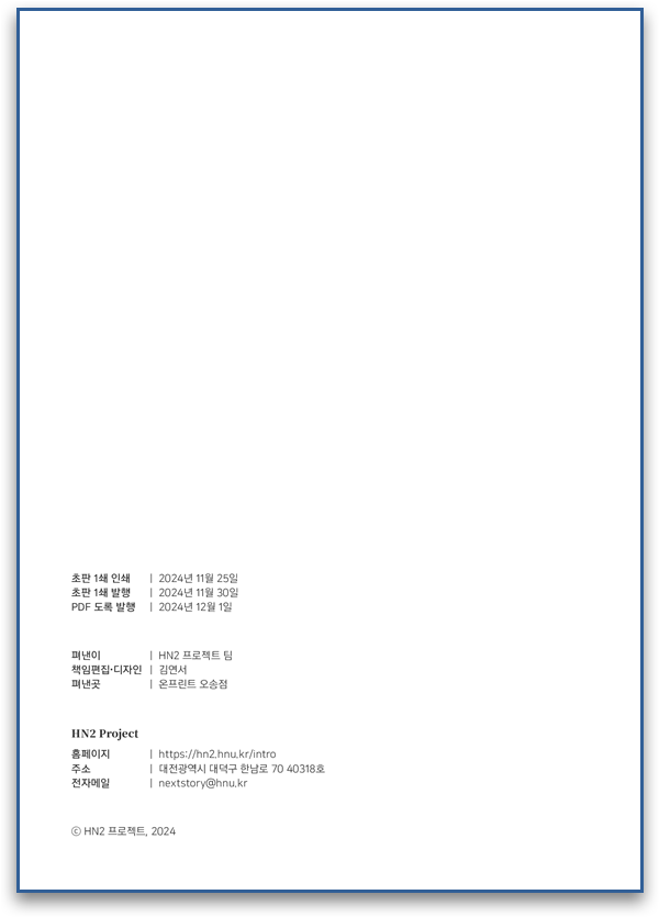 더 전하는 이야기 디지털 포엠 전시회 도록 HN2 프로젝트 2025. 4. 25. 16:48 디지털 포엠 전시회 온라인 도록.pdf 11.73MB 공유하기 게시글 관리 HN2 랩 "우리가 만들어가는 진짜 디지털 문학의 세계" 저작자표시 비영리 동일조건 (새창열림) '더 전하는 이야기' 카테고리의 다른 글 HN2 프로젝트에 함께할 협력 창작자(작가)를 구해요! (0) 2025.07.10 현대 미디어 아트 그룹, ‘슬릿스코프’ (6) 2024.09.23 '더 전하는 이야기' Related Articles HN2 프로젝트에 함께할 협력 창작자(작가)를 구해요! 현대 미디어 아트 그룹, ‘슬릿스코프’